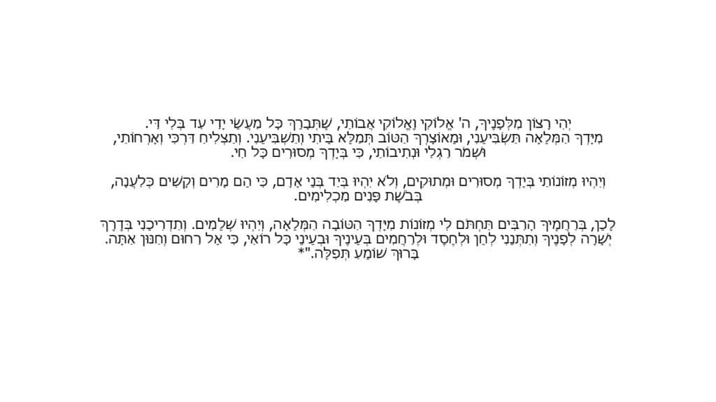 זֹאת תְּפִלָּה סְגֻלִּית לְהַצְלָחָה בְּפַרְנָסָה, וְהָרַמְבַּ"ן הָיָה מִתְפַּלֵּל אוֹתָהּ שָׁלֹשׁ פְּעָמִים, וּמְבַקֵּשׁ שֶׁמְּזוֹנוֹתָיו יִהְיוּ **"מִיָּדְךָ הַמְּלֵאָה"** וְלֹא מִיַּד בְּנֵי אָדָם.