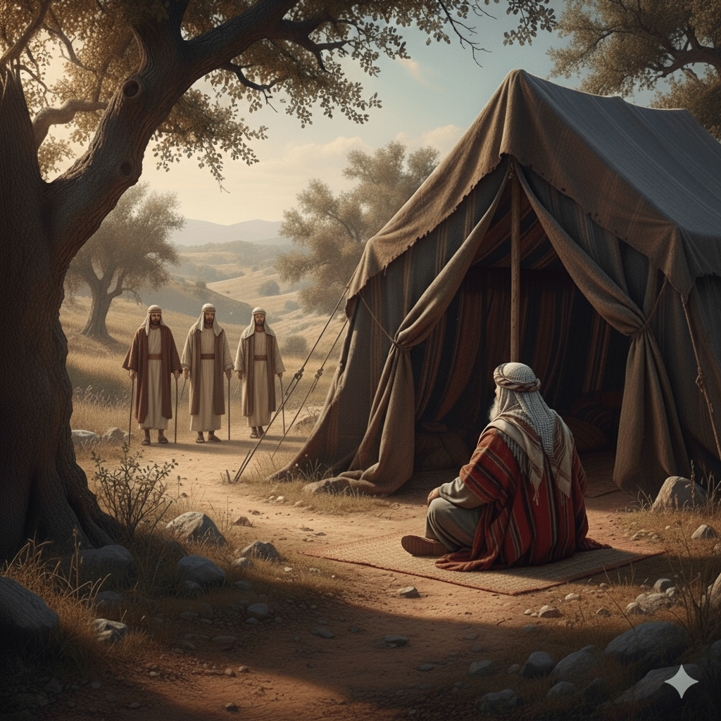 וְהוּא יֹשֵׁב פֶּתַח-הָאֹהֶל, כְּחֹם הַיּוֹם.