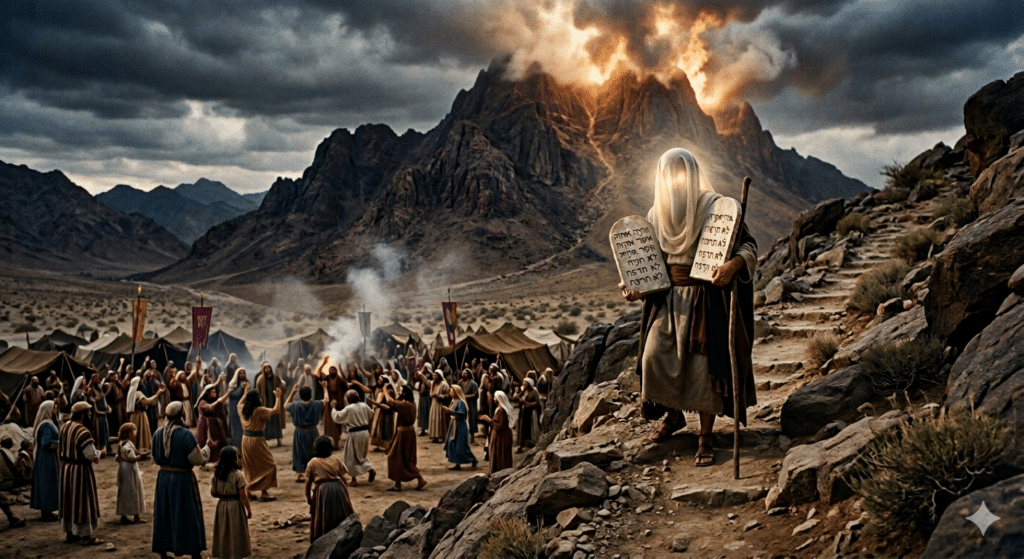 יז וַיֹּאמֶר יְהוָה אֶל-מֹשֶׁה, גַּם אֶת-הַדָּבָר הַזֶּה אֲשֶׁר דִּבַּרְתָּ אֶעֱשֶׂה: כִּי-מָצָאתָ חֵן בְּעֵינַי, וָאֵדָעֲךָ בְּשֵׁם. יח וַיֹּאמַר: הַרְאֵנִי נָא, אֶת-כְּבֹדֶךָ. יט וַיֹּאמֶר, אֲנִי אַעֲבִיר כָּל-טוּבִי עַל-פָּנֶיךָ, וְקָרָאתִי בְשֵׁם יְהוָה, לְפָנֶיךָ; וְחַנֹּתִי אֶת-אֲשֶׁר אָחֹן, וְרִחַמְתִּי אֶת-אֲשֶׁר אֲרַחֵם. כ וַיֹּאמֶר, לֹא תוּכַל לִרְאֹת אֶת-פָּנָי: כִּי לֹא-יִרְאַנִי הָאָדָם, וָחָי. כא וַיֹּאמֶר יְהוָה, הִנֵּה מָקוֹם אִתִּי; וְנִצַּבְתָּ, עַל-הַצּוּר. כב וְהָיָה בַּעֲבֹר כְּבֹדִי, וְשַׂמְתִּיךָ בְּנִקְרַת הַצּוּר; וְשַׂכֹּתִי כַפִּי עָלֶיךָ, עַד-עָבְרִי. כג וַהֲסִרֹתִי, אֶת-כַּפִּי, וְרָאִיתָ, אֶת-אֲחֹרָי; וּפָנַי, לֹא יֵרָאוּ. {