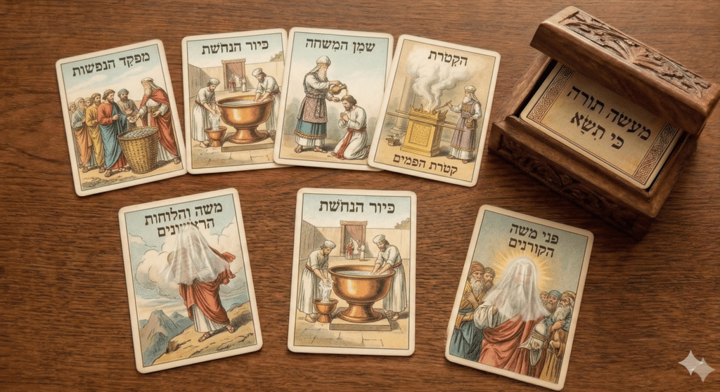 מִטְרַת הַמִּשְׁחָק: לֶאֱסֹף אֶת מֵירַב הַנְּקֻדּוֹת עַל יְדֵי הֶסְבֵּר שֶׁל מִלִּים וּסְצֵנוֹת מִתּוֹךְ קְלָפֵי הַפָּרָשִׁיּוֹת.