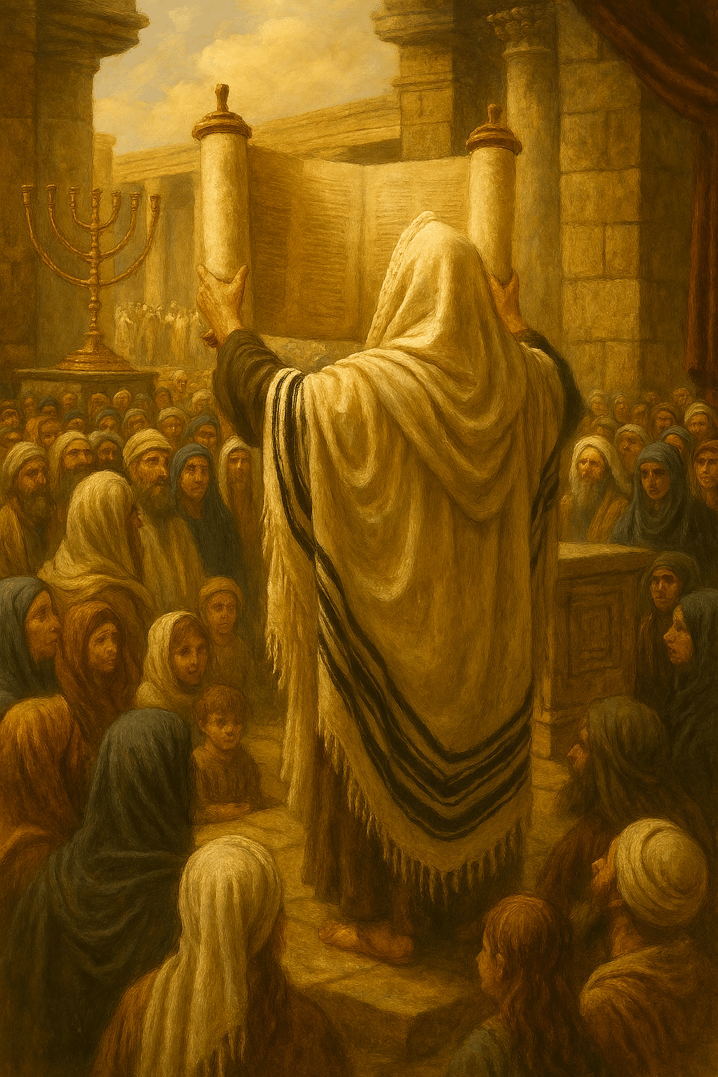 הַאֲזִינוּ הַשָּׁמַיִם, וַאֲדַבֵּרָה; {ס} וְתִשְׁמַע הָאָרֶץ, אִמְרֵי-פִי. {ר} ב יַעֲרֹף כַּמָּטָר לִקְחִי, {ס} תִּזַּל כַּטַּל אִמְרָתִי, {ר} כִּשְׂעִירִם עֲלֵי-דֶשֶׁא, {ס} וְכִרְבִיבִים עֲלֵי-עֵשֶׂב. {ר} ג כִּי שֵׁם יְהוָה, אֶקְרָא: {ס}