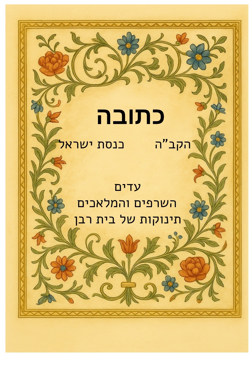 שטר אירוסין ותנאים חיברו הרה"ק רבי ישראל נג'ארה זצ"ל מגורי האריז"ל בְּעֶזְרַת הַשֵּׁם יִתְבָּרַךְ וּלְמַזָל טוֹב, הַמַּגִּיד מֵרֵאשִׁית אַחֲרִית, הוּא יִתֵּן שֵׁם טוֹב וּשְׁאֵרִית, לְאֵלֶּה דִּבְרֵי הַתְּנָאִים וְהַבְּרִית, שֶׁנִּדְבְּרוּ וְהוּתְנוּ