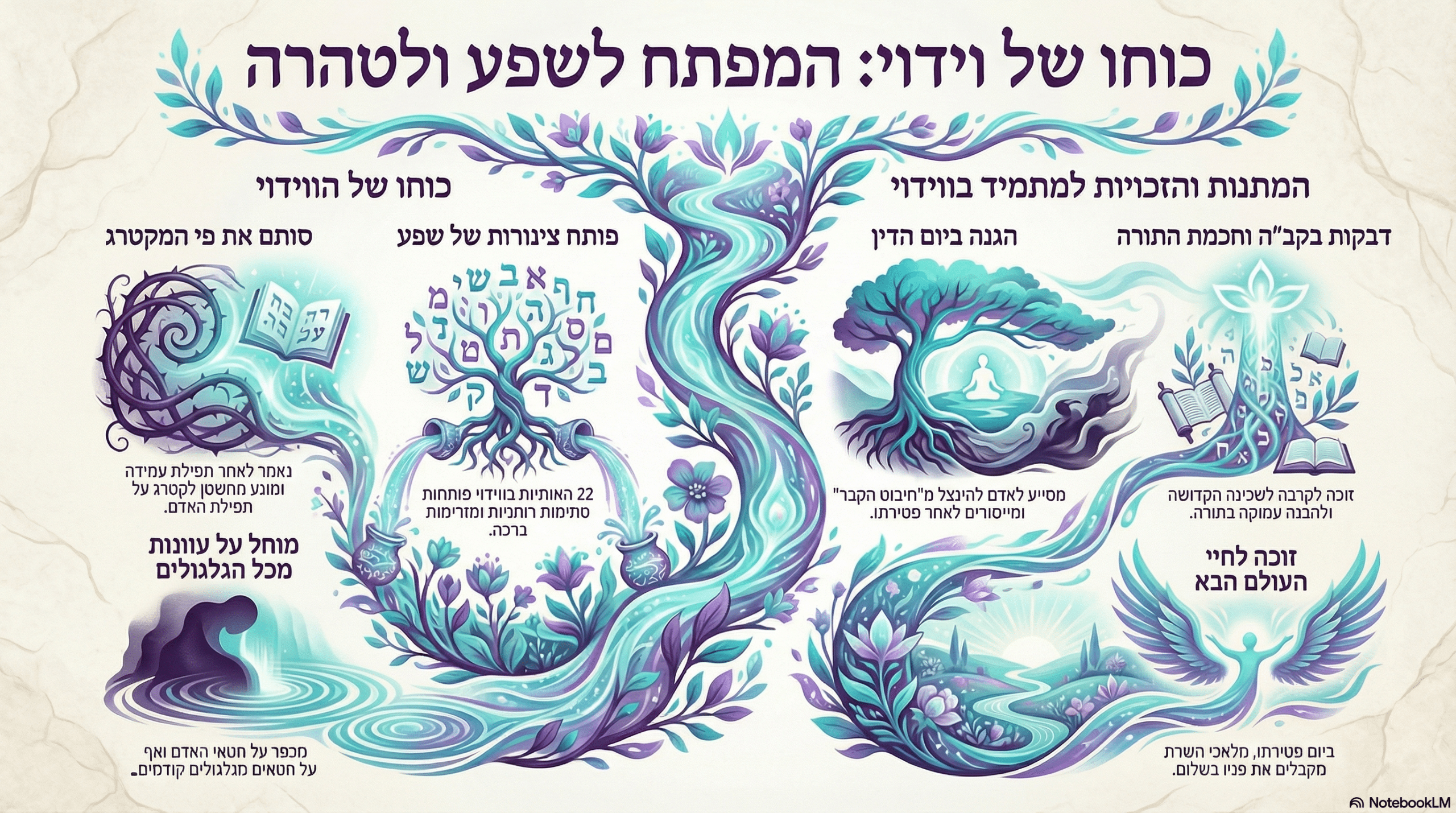 דִּמְעָה הִיא דִּין, מְלֵחָה וְרוֹתַחַת, הִיא מְמַתֶּקֶת דִּינִים, וְאֶת הַחוּצָה שׁוֹלַחַת. לֵאָה שִׁנְּתָה גּוֹרָל, בִּבְכִי וּתְפִלָּה, זָכְתָה לַצַּדִּיק, מֵעֵשָׂו נִצְּלָה. בְּכִי שׁוֹבֵר קְלִיפּוֹת, מַבְרִיחַ מְקַטְרְגִים, מַעֲלֶה תְּפִלּוֹת, גַּם מִזְּמַנִּים יְשָׁנִים.